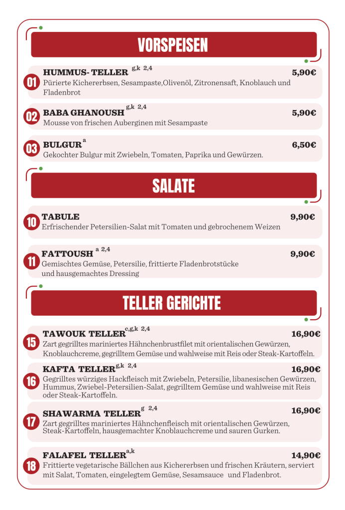 Restaurant Menü